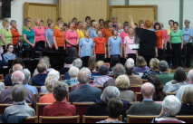 What an exciting, unusual, 'euphoric' setting in which to perform two of our hand-clapping, foot-tapping, always popular, audience participating, songs! We were invited to perform in a multi talented, very varied program of entertainment as part of Louth's Zero Degrees mini festival. It was held in the arena of Louth's Livestock cattle market. The roof rocked, the walls vibrated, the audience cheered and clapped, choir members gave a magnificent performance full of energy and enthusiasm.